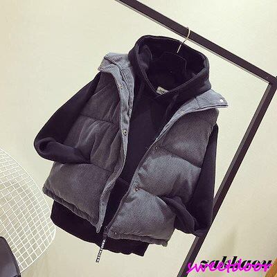 ベスト キルティング コーデュロイ 中綿 冬 トップス コート パーカー 羽織 ジップアップ レディース 無地 ポケット付き きれいめ 体型カバー