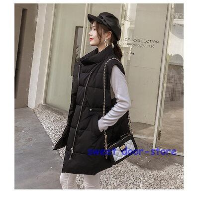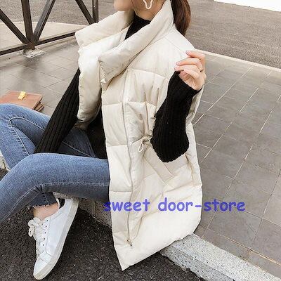 中綿ベスト ロングベスト レディース ジレ アウター 羽織り ゆったり 軽量 シンプル カジュアル 保温 着痩せ 暖かい 防寒 冬
