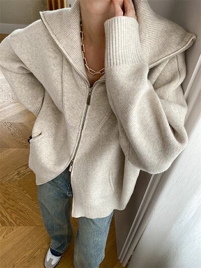 ニットカーディガン レディース 厚手 秋冬 ジャケット ニットジャケット 折襟 ショート丈 コート ダブルジップ ニット カーディガン 羽織り アウター 長袖 ジップアップ セーター ドロップショルダ