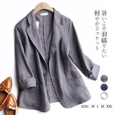 コットンリネン ジャケット レディース 春 ライトアウター テーラードジャケット サマースーツ ジャケット リネンタッチ ナチュラル サマージャケット ママ オフィスカジュアル 洗える オリジナル 綿