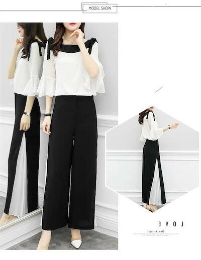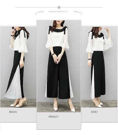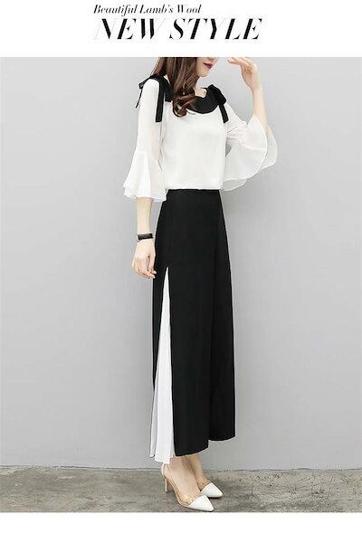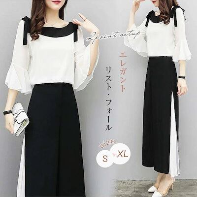 セットアップ レディース トップス パンツ ワイドパンツ ガウチョパンツ スリット パンツスーツ 2点セット パンツドレス 春 夏 秋 シフォンブラウス オフィス 通勤 お洒落 着痩せ
