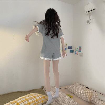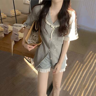 パジャマ ルームウェア夏の新型insパジャマシンプル半袖半ズボンゆるい薄いカジュアルスーツレディース 韓国ファッション