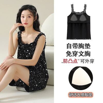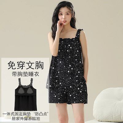 パジャマ ルームウェア 2024夏 パジャマ 胸当て付きノースリーブキャミソール 半袖 韓国版 カジュアルかわいい スーツ は外着可能 レディース 韓国