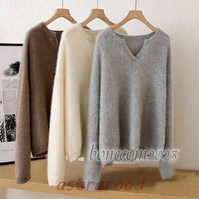 ニット セーター 秋 レディース 可愛い ニット ニットセーター vネック プルオーバーセーター ゆったり プルオーバー ふわふわ もこもこ 秋 秋物 通勤 冬