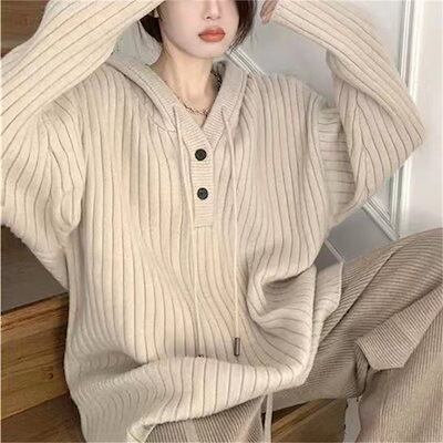 ニットセーター フード付きセーター コート レディース 2024 秋 新作 ゆったり カジュアル 柔らかい ニット トップス