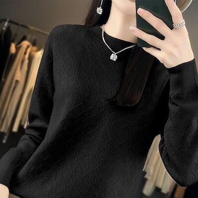 ベーシックニット丸首透かしニットレディース秋冬新作アウター長袖セーターカーディガンゆったり着やせトップス