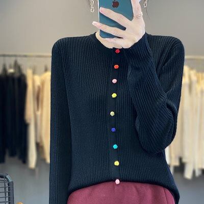 秋冬の新作丸首精紡ウールカーディガンレディースファッションオールインワン長袖コート身だしなみアウターセーター