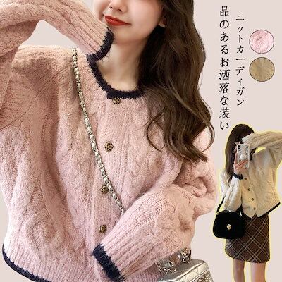 【人気商品】新作 カジュアル 可愛い セーター ゆったり 百掛け ショット丈 ニットカーディガン トップス アウター ベーシックニット ラウンドネックニットカシミヤタッチ