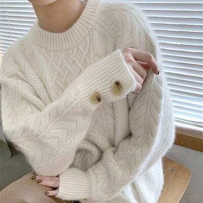 【本日限定】ベーシックニット 2024春秋冬新作 シンプル 無地ニットセーター レディース 厚手百掛け 丸ネック ツイストニット トップス 冬 快適暖かい 長袖 トップス