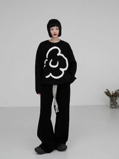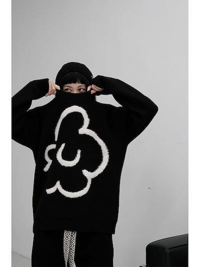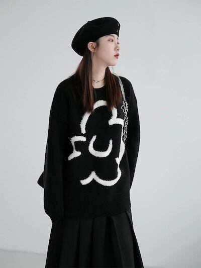 【2枚購入で 3oo円OFF!】パーカー 2024秋の花々秋冬のけだるい黒ニットのヘッダーセーター女