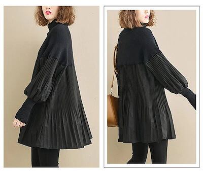 【人気商品】ラウンドネックニット韓国大きいサイズ 秋冬ゆとりタートルネック 怠惰復古ニットワンピースプリント マタニティ