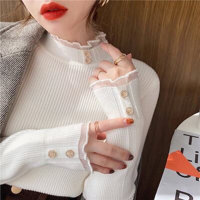 スウェット厚手 ニットカーディガン アンダーウェア 秋冬 レース インナー ハイネック 修身 レディース セーター