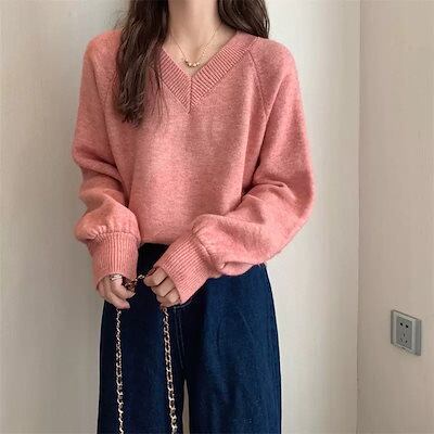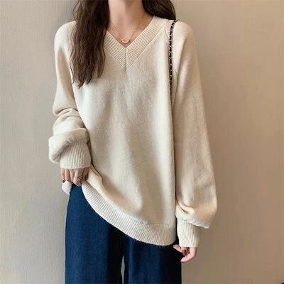アンダーウェア レディース 秋冬 Vネック セーター ニット 長袖 トップスカシミヤタッチ