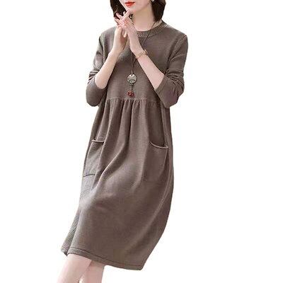 レディース ニット タートルネック ニットニットワンピース ロング 秋冬 韓国ファッション レディース ニット ロング 膝丈 A-C124