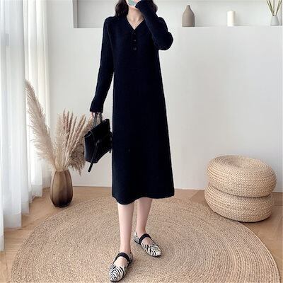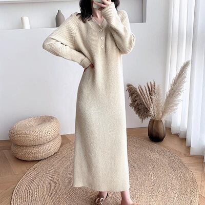 レディース ニット タートルネック ニットニットワンピース ロング 秋冬 韓国ファッション レディース ニット ロング 膝丈 A-C125