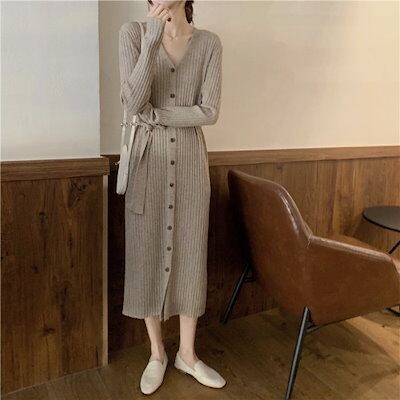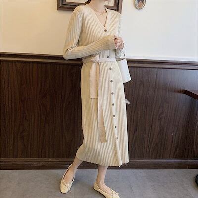 レディース ニット タートルネック ニットニットワンピース ロング 秋冬 韓国ファッション レディース ニット ロング 膝丈 A-C116