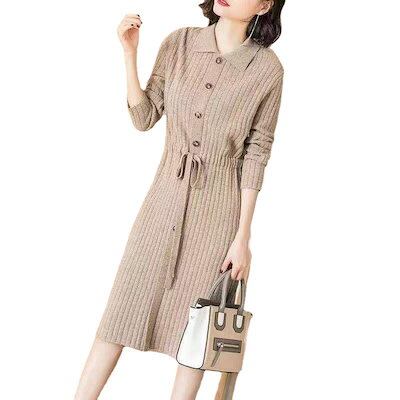 レディース ニット タートルネック ニットニットワンピース ロング 秋冬 韓国ファッション レディース ニット ロング 膝丈 A-C113