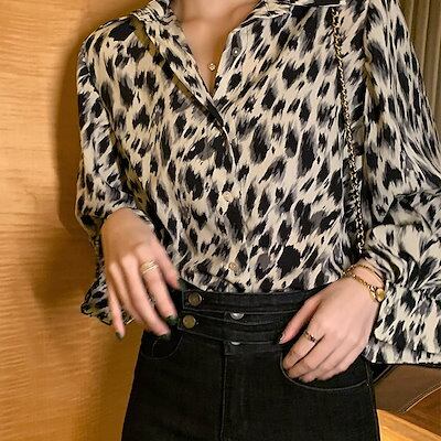 2024新作 豹柄 シンプル レトロプリント 長袖インナーアウター ブラウス可愛い トップス お肌に優しい ブラウス 韓国ファッション レディース 服 紫外線対策 ロンt シフォンブラウス
