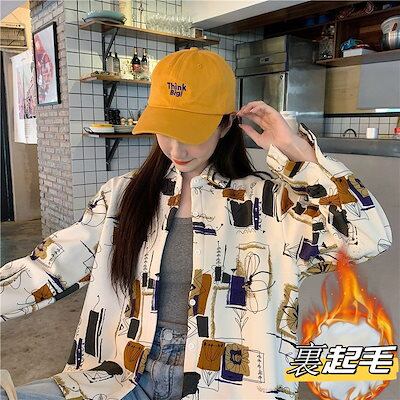 2024新作 裏起毛シャツ 厚手 レトロプリント長袖インナーアウター ブラウス トップス お肌に優しい ブラウス 韓国ファッション レディース 服 紫外線対策 ロンt シフォンブラウス