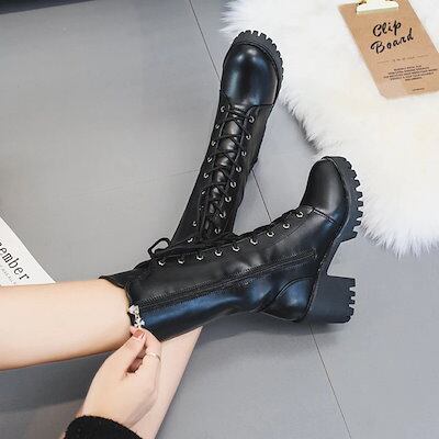 ロングブーツ レディース レースアップロングブーツ ローヒール 美脚 カジュアル おしゃれ 履きやすい 歩きやすい エンボス柄 ファスナー シューズ1340