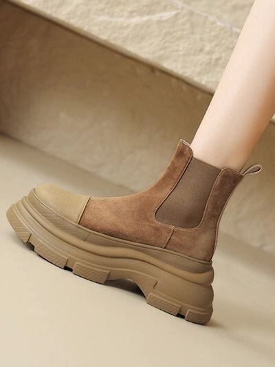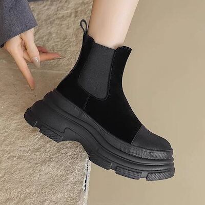 3日以内出荷厚底シューズ 23新作チェルシーブーツマドレーヌ底ショートブーツレディース 韓国