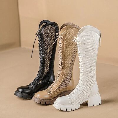 厚底シューズ ヒールパンプススニーカーシューズブーツ厚底ロングブメッシュブーツ 23新作 薄手通気サンダル 編み上げメッシュレディース 韓国ファッション サンダル さんだる