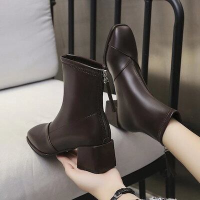 3日以内出荷厚底シューズ ヒールパンプス厚底スニーカーシューズブーツ レディース スタイルアップヒールパンプスブーツ23新作ヒールファッションスクエア太ヒールショートブーツ