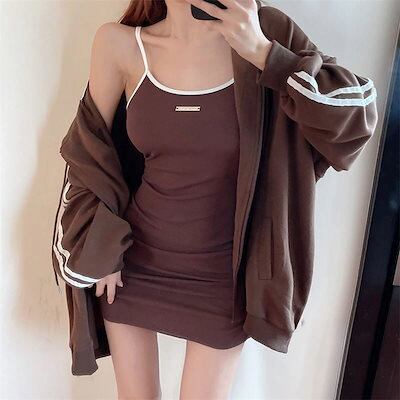 サスペンダー ジャケット ツーピース セットアップ セット スウェットシャツ パッケージヒップワンピース レディース 秋