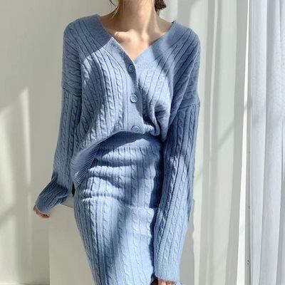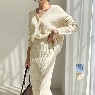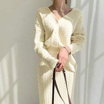 ケーブルニットセットアップレディース秋冬