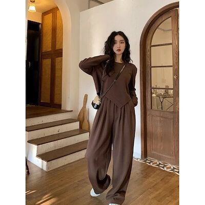 スポーツ 新作 人气 スウェット セットアップ スーツ 2点セット カーキ レディース 秋 新作 ゆったり