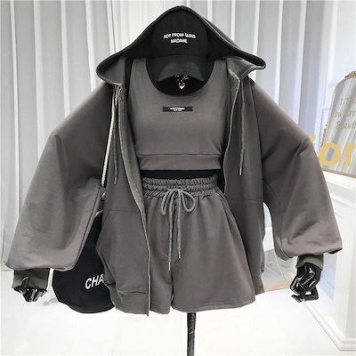 レディース 春と秋 セット商品 スウェットシャツ セットアップ スポーツスタイル ショートパンツ 3点セット