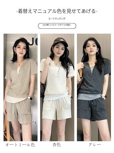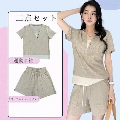 ゆったり 運動半袖 カジュアルショットパンツ セット 薄手 ルームウェア 2024夏 カジュアル 着痩せ 二点セット 韓国ファッション キャミソール ショットパンツ