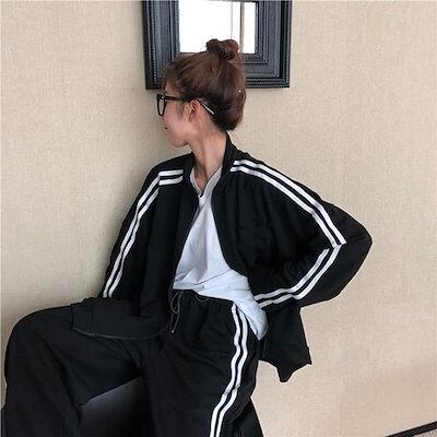 春秋 2点セットアップ ジャージ レディース 韓国風 上下セット スウェット パーカー スエット アクティブウェア カジュアル スポーツ 部屋着 ゆったり 大きいサイズ