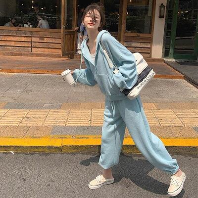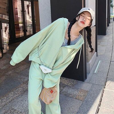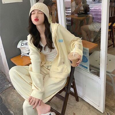 韓国ファッション セットアップ カジュアル 二点セット 長袖 セット セットアップ レディース パーカー スウェット上下セット 運動 ワイドパンツ 着痩せ 大きいサイズ 上下セット