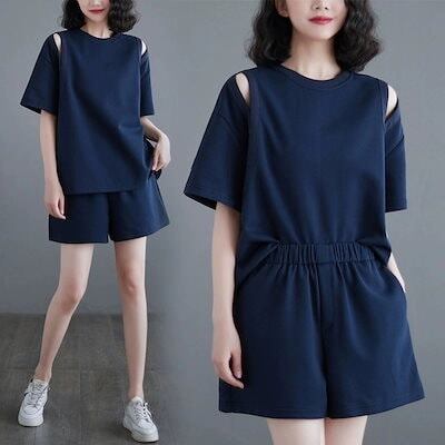 涼しく楽ちんセットアップ スウェット上下セット セットアップ 大きいサイズ レディースウェア/ストラップレス半袖トップス/ショーツ/ツーピースセット