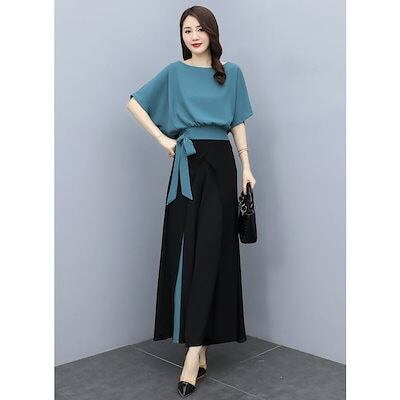 セットアップ レディース 春夏 オシャレセットアップ 半袖ブラウス 九分丈ワイドパンツ シフォン上下セット 韓国風 通勤OL 30代40代 50代大きいサイズ
