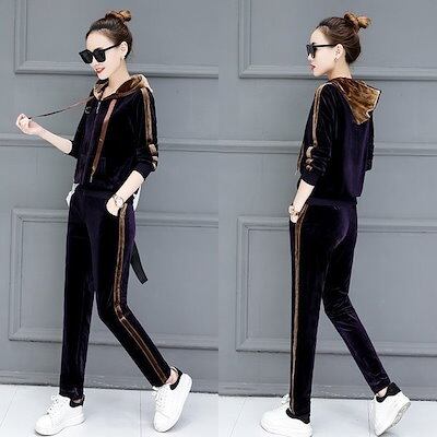 ジャージ 上下セット レディース スポーツウエア 長袖 ベロアセットアップ ランニング ジップパーカ