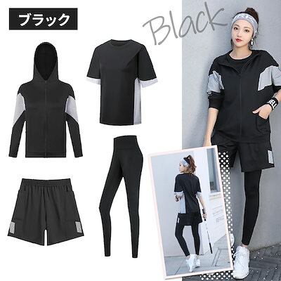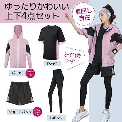 スポーツウェア レディース 4点セット 上下セット 長袖 半袖 体型カバー 女性 フィットネス ヨガ UVカット 大きいサイズ スポーツ トレーニング セパレート レギンス ピラティス ウォーキング