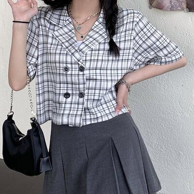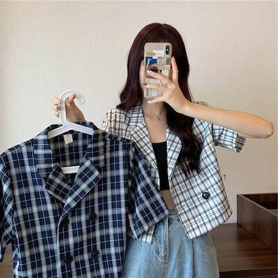ブラウス シャツ レディース 韓国ファッション チェック スーツジャケット レディース フォーマルコート 通勤OL ゆったり カジュアルブラウス シャツ レディース