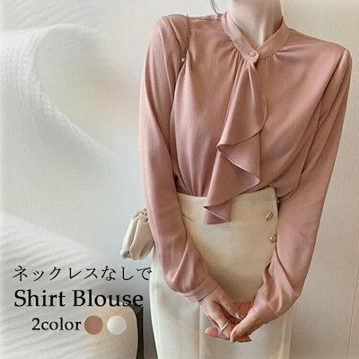 ブラウス プラクスボウタイブラウスシャツ長袖立ち襟フリルオフィスボウタイブラウスレディースゆったりシャツブラウスフォーマルスーツインナートップス白ブラウス秋長袖ブラウスギャザー落ち感フォーマルブラウス