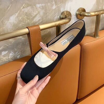 フレンチリボンパンプスバレエシューズフラットシューズスター同靴 レディース