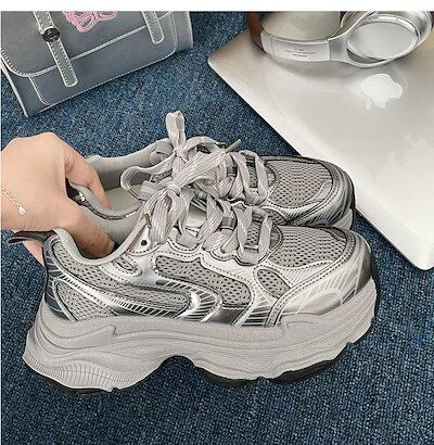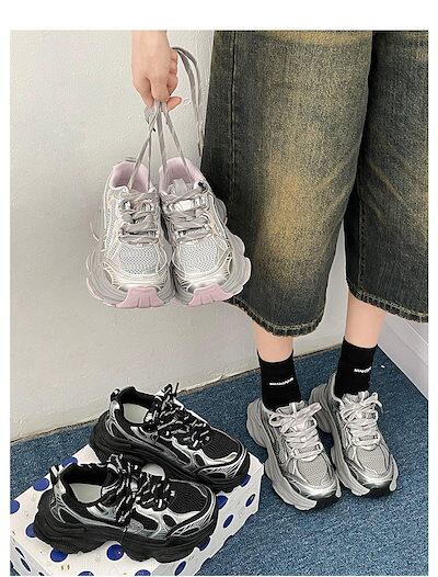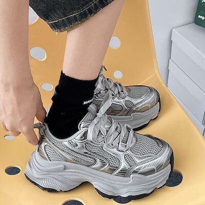 2024秋 好感度UP カジュアル ファッション系 PU 丸トゥ 切り替え スニーカー シューズ 靴 春 夏 冬
