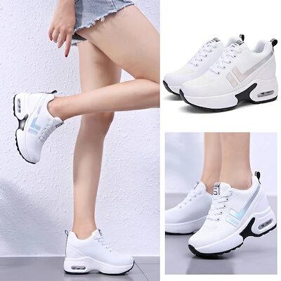 スニーカー インヒール レディース 厚底 インヒールスニーカー レディース シークレットシューズ 軽量 美脚 細脚 8cm厚底 シューズ レースアップ ヒールアップ 身長アップ 厚底シューズ 歩きやす