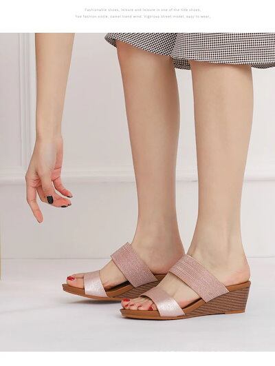 キラキラ 夏 サンダル レディース ウエッジソール 履きやすい スリッパ 大きい ミュール メガ割