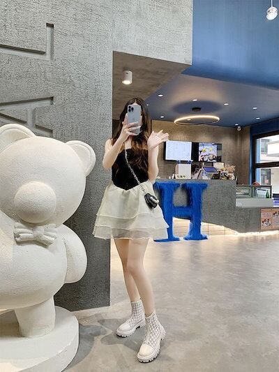 【3日以内出荷】厚底シューズ ヒールパンプススニーカー サマーブーツ 女性2023夏薄型中空通気性ショートブーツバックジッメッシュブーツ 韓国ファッション サンダル さんだる