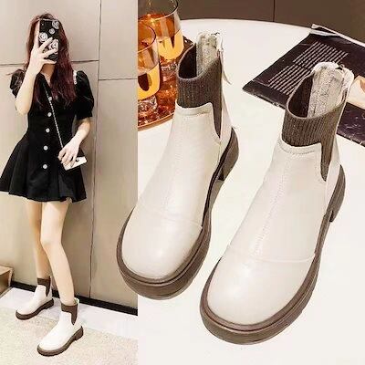 【3日以内出荷】厚底シューズ ヒールパンプス厚底スニーカーシューズブーツ レディース スタイルアップ!ヒールパンプス新作マーティンブーツガール2023秋冬ソックスブーツにスエードを重ねて使えるショート