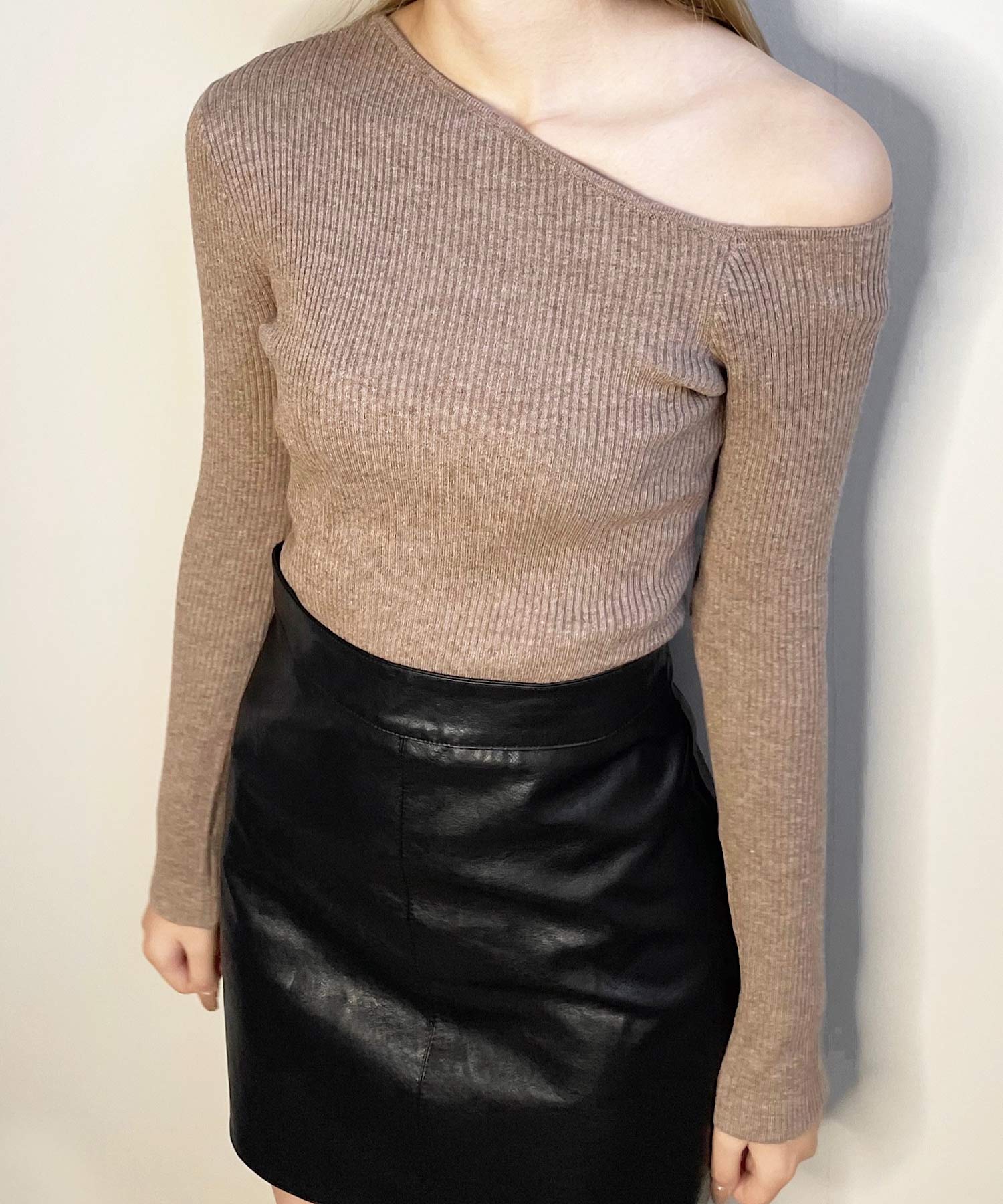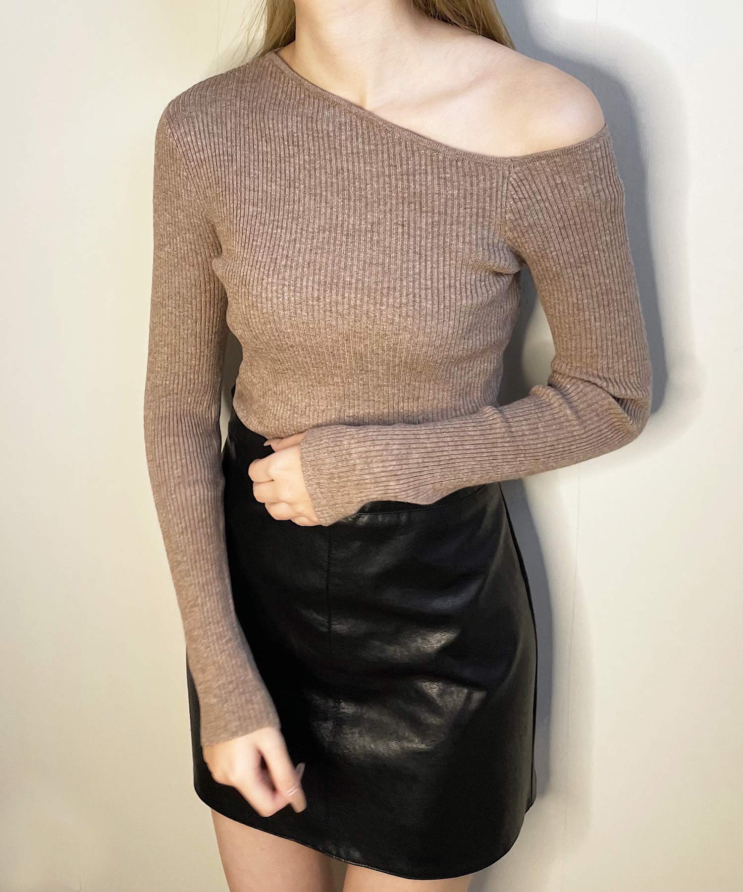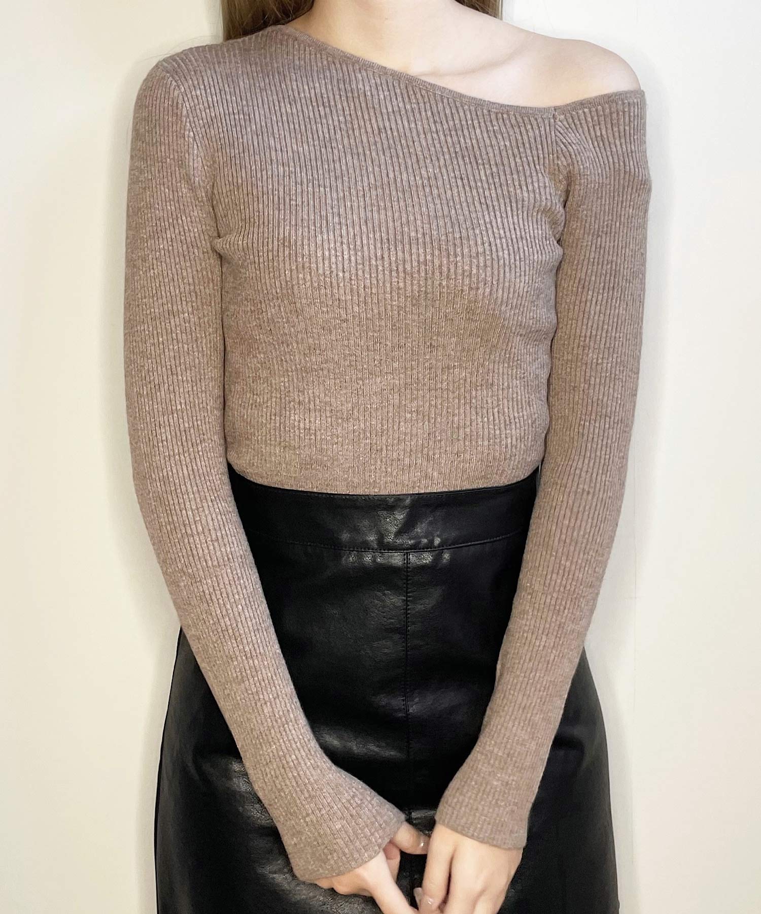 ワンショルダー リブニット 【即納】 長袖 セーター ベージュ レディース 韓国 プチプラ おしゃれ