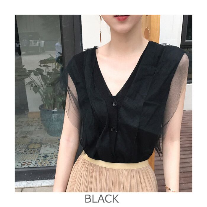 ニットキャミVネックカーディガンレースタンクトップ花レース涼しげ薄手ニットレディースニットベストブラ