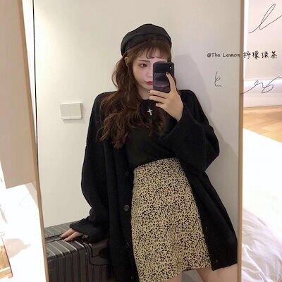 ニットベスト版秋冬Vネックニットセーター学生ゆったり外着だるい風黒冬にセーターコート女