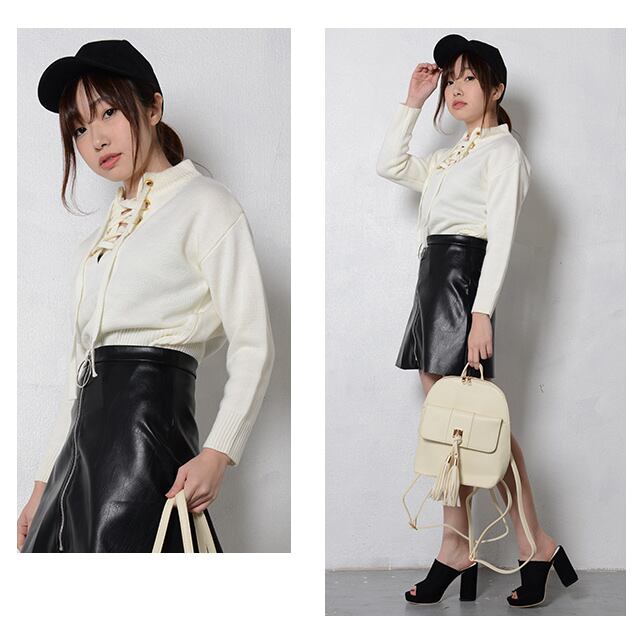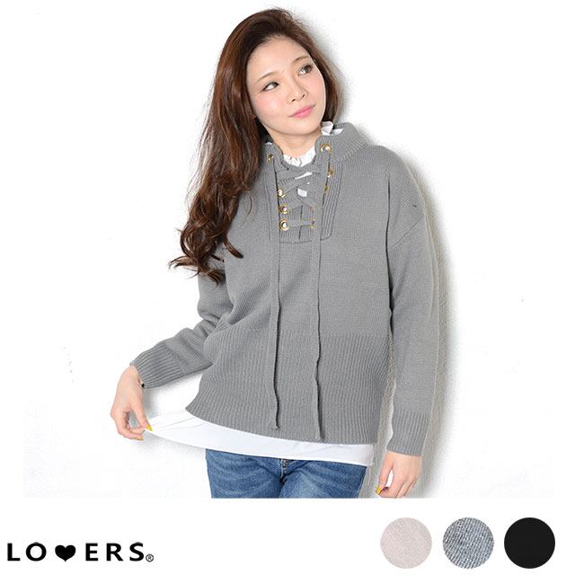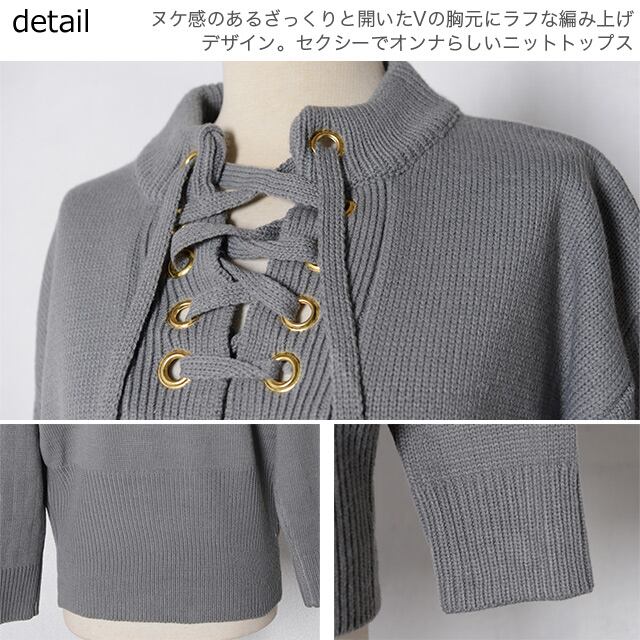 レースアップボトルネックネックニット ma【即納】 長袖 レディース レースアップニット ハイネック